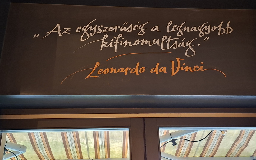 Aki a reggeli, az ebéd, a vacsora vagy a délutáni kávézás közben szemlélődik egy kicsit, felfedezheti a falakon olasz hírességek néhány érdekes gondolatát. A divatdiktátor Armani nem kevéssé meglepő véleménye szerint az elegancia nem az, hogy észrevesznek, hanem hogy emlékeznek rád. A szabadságharcos és forradalmár Giuseppe Mazzini pedig úgy érzi: a család az a hely, ahol a szív otthonra talál! Milyen jól illik ez egy finom karácsonyi vacsorához vagy egy születésnapi ebédhez. Kínál az üzlet majd tartalmas reggeliket, húsosakat és húsmenteseket. De azt sem felejtjük el, hogy mi imádjuk az omlettet, meg a rántottát, lesz magyaros reggeli sült burgonyával, sült kolbásszal. A bundáskenyeret is szeretjük, no de itt Serrano sonkával és Cheddar sajttal töltve kapjuk. Az angol reggelit viszont grillkolbász, bacon, két tükörtojás, sült gomba, sült paradicsom, friss pékáru alkotja.