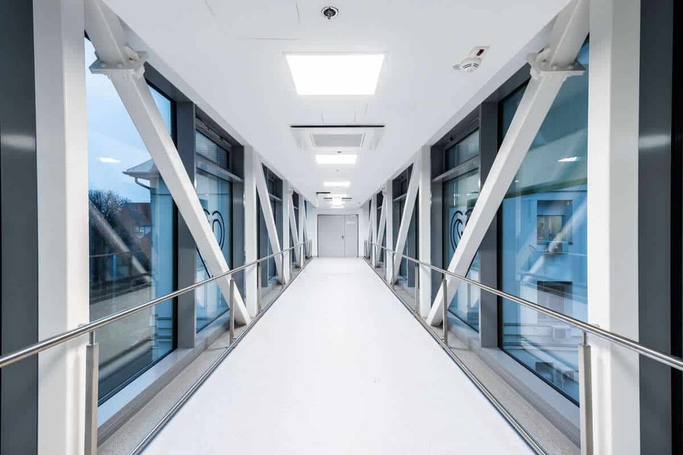 A betegek közlekedésének megkönnyítésére már a tervezés kezdetén gondoltak. Az új épületet 9 tonnás acélhíd köti össze a Városmajor utca 68. szám alatti főépülettel, lehetővé téve a kettő közötti zárt, biztonságos átjárást. Így az intenzív osztályok, a műtők és a CT, a szintkülönbség leküzdése nélkül, a további high-tech képalkotók készülékek pedig zárt térben érhetők el. A munkálatokról Szeivolt István, a kivitelező Épkar Zrt. vezérigazgatója. néhány adatot ismertetett. Az építkezés 16 méter mélyről indult és ennek során csaknem 15 ezer köbméter földet kellett kitermelni az ezer négyzetméteres telekről. Az alaplemezhez 1100 köbméter betont és 120 tonna betonacélt építettek be.
