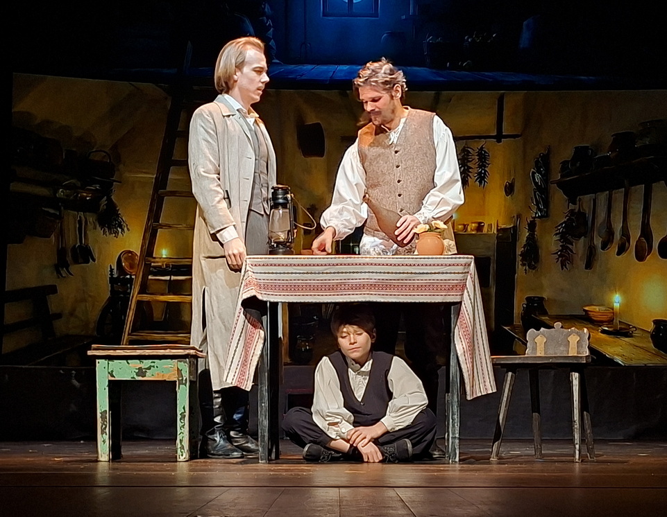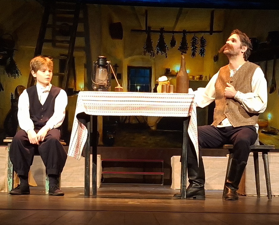 A színdarab szerzője maga a rendező. Jól használja ki a közönség valószínű ismereteit és a vers adta lehetőségeket. A nyitóképben Arany Jánost (Tóth János Gergely) látjuk a kisfiával – a nevét egy Petőfi versből tudja mindenki: Laci (Alakszai Kristóf Boldizsár). Itt kapja Arany a felkérést a Ferenc József császárt dicsőítő vers írására. A jelentben máris van egy kis előrekacsintás napjainkig, nem áruljuk el hogyan, biztosan észre fogja venni mindenki. A tapasztalt színházlátogató viszont ebből már arra is következtet, lehetnek még hasonlóak az est folyamán. Jobban kezd figyelni – és igaza lesz! A nem túl gerinces jellemű barát távozása után viszont megint egy érdekes mozzanat következik. A költő, jó apa módjára felhasználja a lehetőséget a gondolkodva nevelésre és a döntésbe bevonja a fiát.