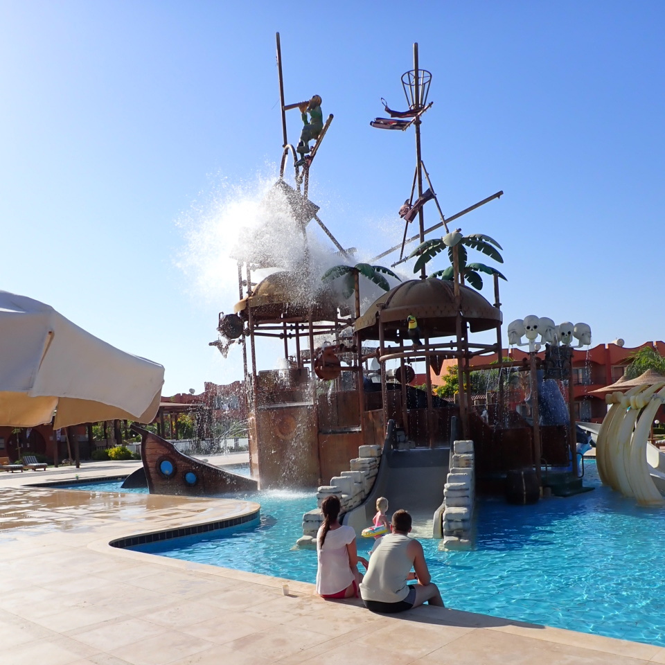 A gyerekek legkedvesebb játszóhelye a kalózhajó. Egy ügyes szerkezet az árbóc csúcsa közelében elhelyezett hatalmas, billenő vödör víztartalmát időről-időre az alant játszókra zúdítja. Nagyon kedvelik. A víz útjában különböző játékelemek vannak, tehát balesetet nem okozhat. Ezen kívül számos más játszóteret is találnak a gyerekek a parton, a medencékben több csúszda is csak őket várja. A méretük a korcsoportokhoz igazodik. Egy másik medencében a felnőttek és nagyobb gyerekek által használható csúszdák között az egyik szélessége alkalmas arra, hogy ketten együtt csússzanak le, ezt valamelyik szülő a gyerekével együtt élvezheti. Az étteremben nagy figyelmet fordítanak arra, hogy mindig legyenek a gyerekek számára is élvezhető ételek, este pedig – a vacsora után - zenés játékokra csábítják a kisebeket.