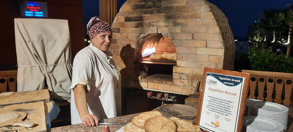 Ha pedig már az étkezésről szólunk, a legkényesebb ízlésű felnőttnek sem lehet oka panaszra. Sem a minőségre, sem a választékra! Mindig vannak olyan ételek, amik közvetlenül a vendég szeme láttára készülnek – a friss kenyér például reggel és este is. A vezérigazgatót, Atef Osman urat, de a konyhafőnököt, Kamal Abosrea Salma urat is naponta több alkalommal láthatjuk az étteremben, hol valamelyik dolgozóval, hol a vendégekkel beszélnek, így semmi sem kerülheti el a figyelmüket. Sokszor csak a szemükkel intenek. A nagy étterem önkiszolgáló jellegű. Ha egy idősebb vagy nehezebben mozgó vendég mindkét kezében tányér van, már lép is oda hozzá egy pincér, elveszi azokat, és az asztalához kíséri a vendéget.